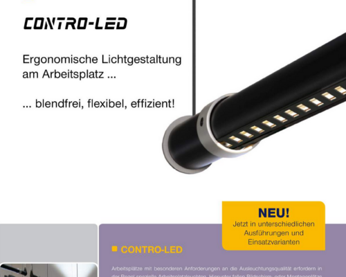 Neu ist eine Version der CONTRO-LED für Deckeneinbau. Diese kann in alle abgehängten Decken oder Verkleidungen in Regieräumen oder auch in Ü-Wagen eingebaut werden. Dabei beträgt die Einbautiefe lediglich 55 mm.